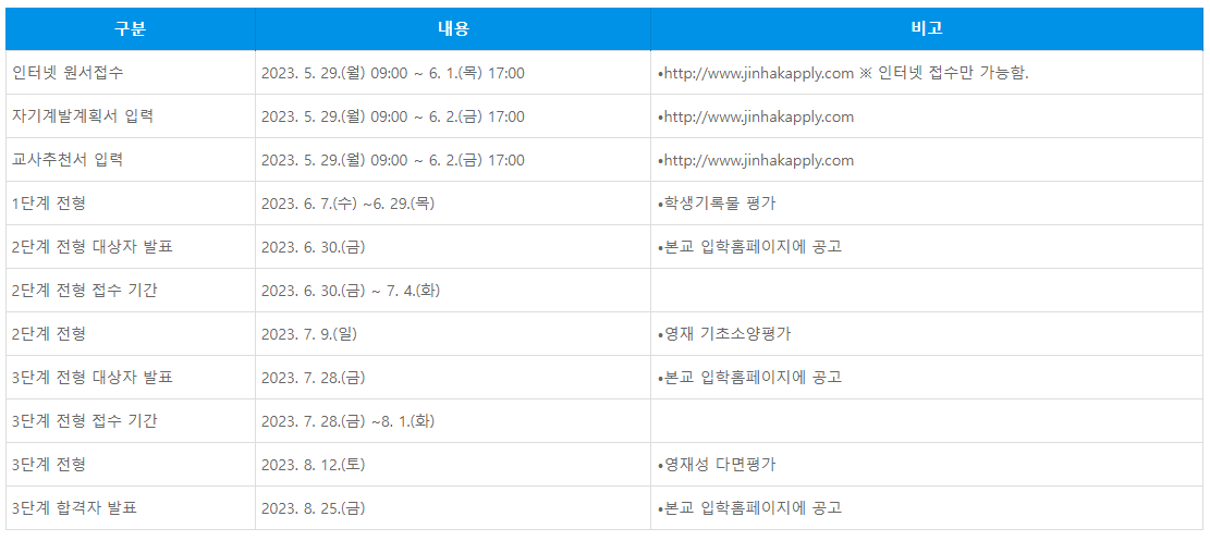 일정 체크 잘 하셔서 입학전형요강도 확인해 보세요.