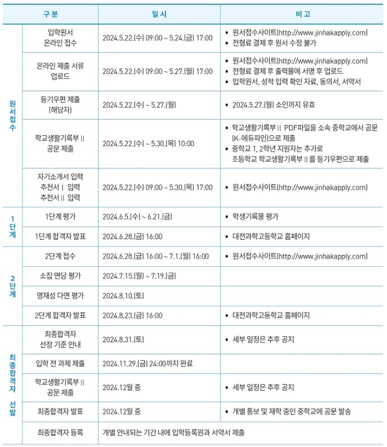 대전과학고등학교 2025학년도 입학전형 요강이 공지되었어요.